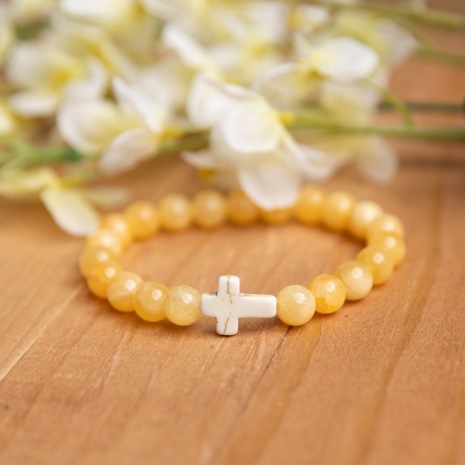 Lemon Jade Gemstone Bracelet with Howlite Cross – Joy & Positivity