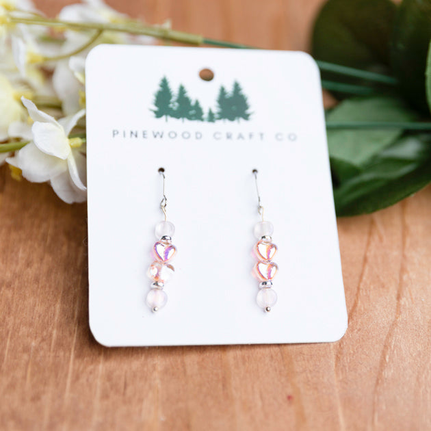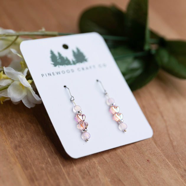 Pink Czech Hearts on Stainless Steel Ear Wires